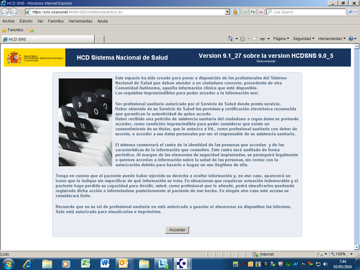 Se ha habilitado desde OsabideAP, menú: Enlaces: Acceso a HC del Sistema Nacional de Salud. El acceso a la página del Ministerio para consultar los Informes de Historia Clínica de los pacientes de otras Comunidades Autónomas. Para entrar, hay que hacer uso del certificado de la Tarjeta Profesional de Osakidetza (TPE).